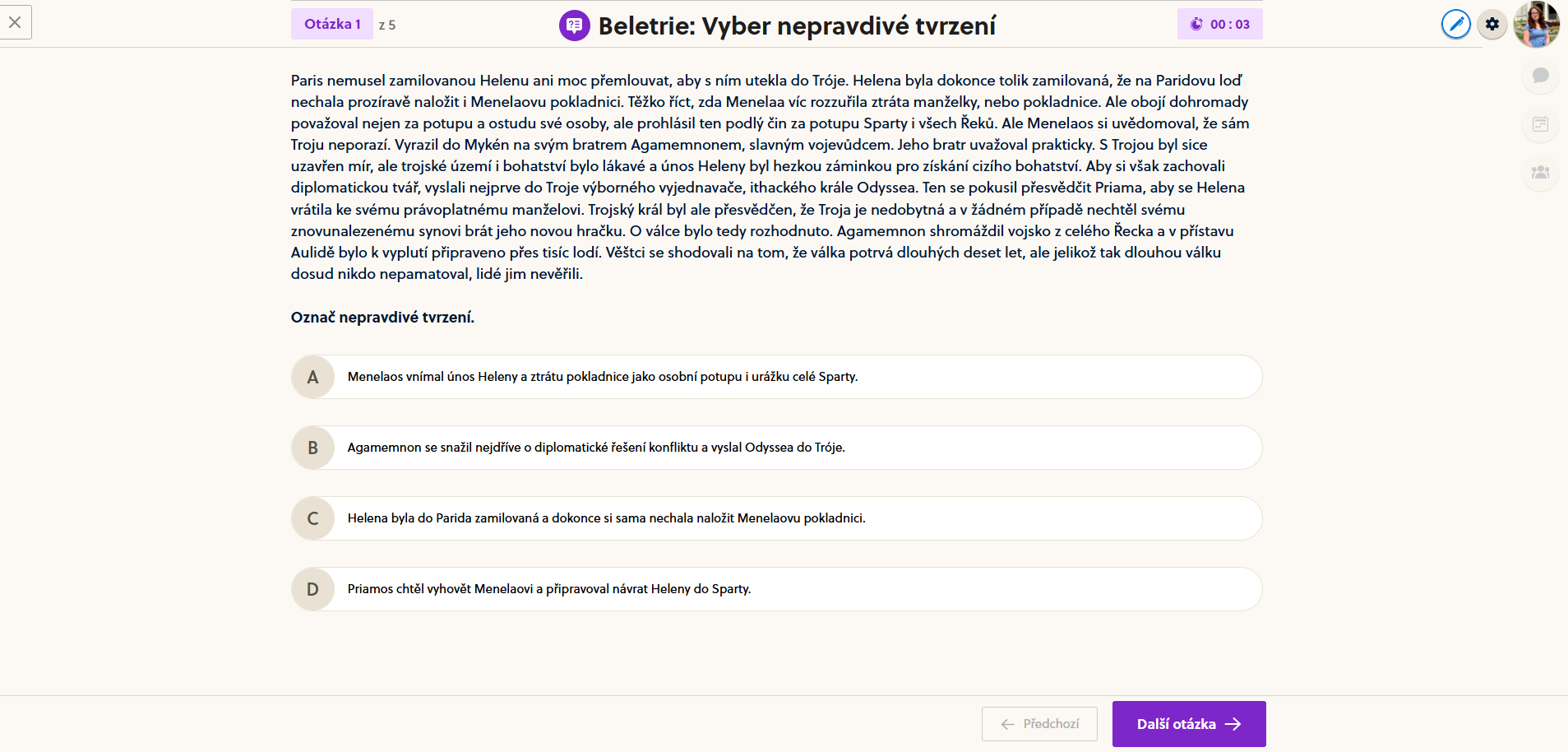 Jedna z oblíbených CERMAT úloh je právě hledání chyb v textu. Na to jsme skvěle připravení a v e-learningu máme hromadu úkolů, které testují právě hledání chyb v textu.